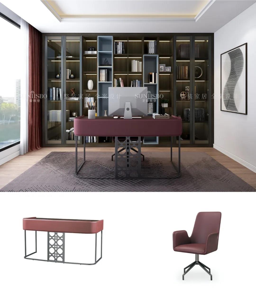 書(shū)房用定制柜解決了一面墻的設計,沒(méi)有夸張的色彩裝飾,簡(jiǎn)潔的柜體與墻面搭配起來(lái)顯得十分精致整潔,透明的可視區域從視覺(jué)上擴大了空間感。閑暇時(shí)光,拾一本書(shū),于書(shū)房,將生活與工作區分開(kāi)來(lái)。